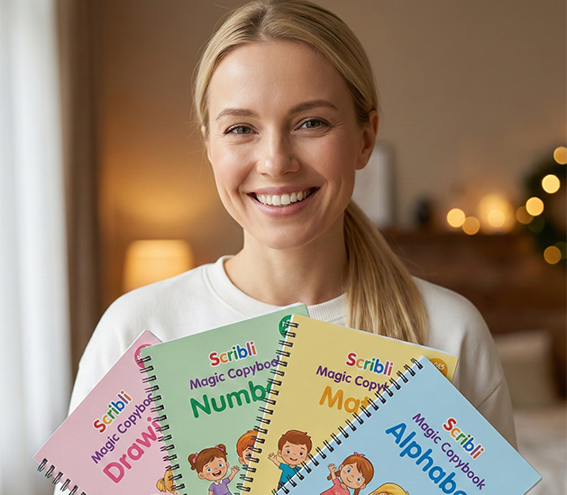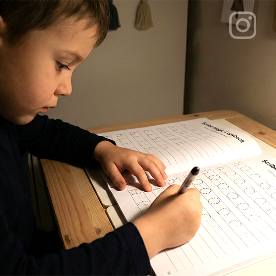 Scribli Magic Copybooks are reusable handwriting practice workbooks for kids ages 3–8. They combine guided tracing pages with disappearing ink pens, so your child can practice again and again without messy erasing—making handwriting practice feel easier, calmer, and more fun.